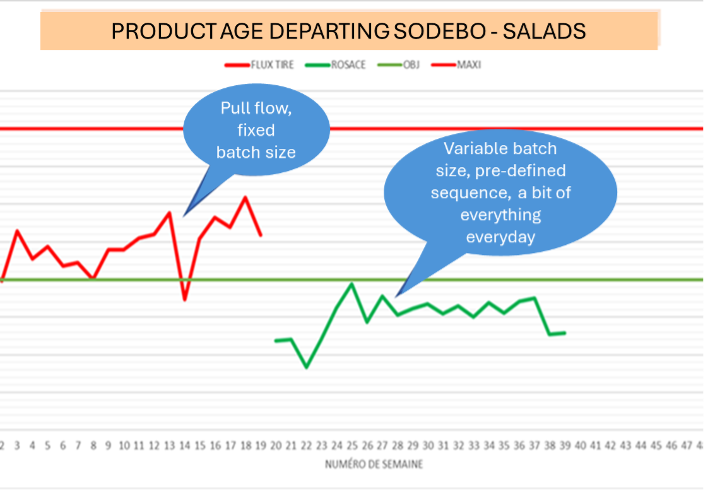 An experiment with a levelled and firm S&OP was attempted in 2019. The approach was typical: the daily load was not affected by the customer’s firm order, production was stabilized on a takt time, and the effort was levelled. Operators on the lines were no longer subject to customer variability. However, the approach generated too many discarded products, as they were too close to their use-by date to be sold.